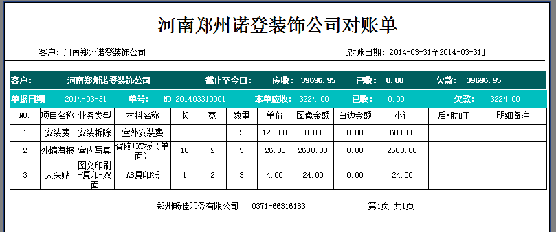 暢佳公司是一家印刷業務為主,同時又承接廣告設計,加工,制作等業務的公司,有很多固定的客戶,每月都會給公司下訂單,公司需要把這么多的客戶每月的下單量,收款情況,欠款情況用軟件管起來,同時這款軟件又能方便制單,因為客戶下單時可能會有多種業務類型,比如一筆室外大型海報業務,可能分解下來的業務就會有設計、噴繪、制作、安裝、送貨等好幾項,公司需要一個明細賬,而不是就記一筆總賬,這就對廣告下單軟件有了更高的要求,也就是軟件在一張單中支持錄入多條明細,而這些明細支持按不同的計價方式計價,比如按面積計價、按數量計價、按次數計價等。同時生成的每月對賬單中必須提供客戶的業務明細,做了什么項目,數量是多少,尺寸是多少,加工費,安裝費是多少。這樣在與客戶對賬過程中既能保證數據明確,又能體現公司的管理水平,提升在客戶心中的公司形象,最終暢佳試用了飛揚動力廣告公司管理軟件后,功能及價格方面都很滿意,最終與公司達成合作。