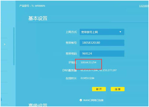 注:每個路由器的界面有所不同,一般都是在“運行狀態”里面可以看到IP