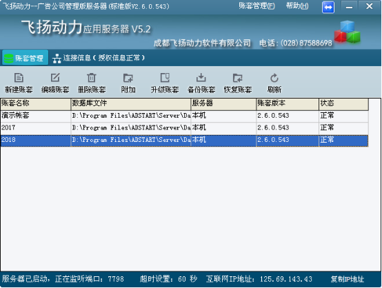 廣告公司管理軟件賬套管理和修改 很多的用戶在購買廣告公司管理軟件之后,總會詢問賬套含義、賬套是用來做什么的? 廣告公司管理軟件中的賬套是包含了廣告公司所做的所有數據,每一個賬套都是獨立的,一個電腦可以設置多個賬套 現在就來具體講解一下,賬套的使用和配置方法吧。 雙擊打開廣告公司管理軟件服務器,打開之后,直接進入到服務器界面,在這里可以進行賬套的管理和修改 比....