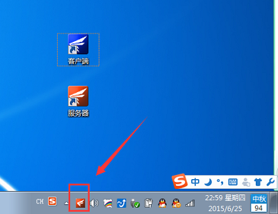 首先,回到主機電腦開機并運行軟件服務器。運行服務器后,在主機電腦桌面右下角會顯示服務器運行圖標,如下圖所示: