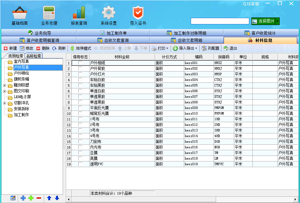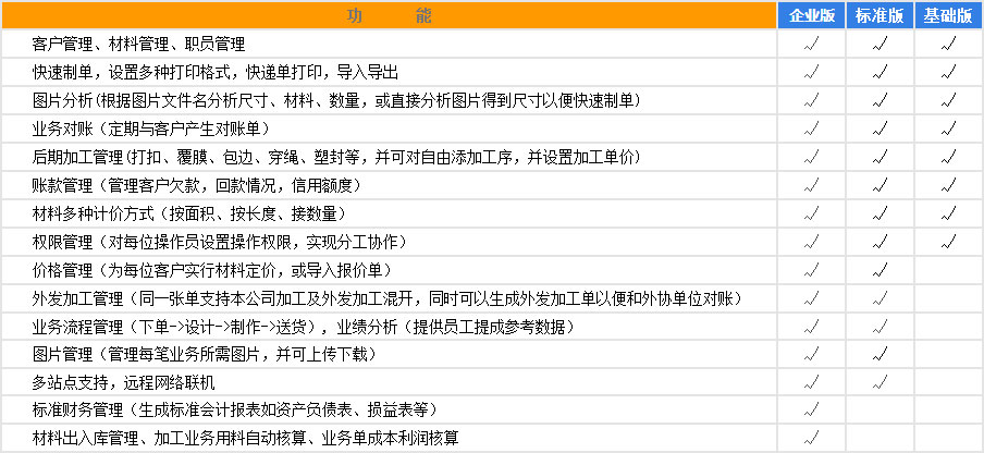 與日常使用的訂單完全吻合,適用于廣告制作各細分行業,制單簡潔快速,直接拖拽圖片即可完成一筆業務錄入,并且自動分析圖片尺寸、用料、價格跟蹤及自動計算小計等,所有操作僅需一步拖拽動作。