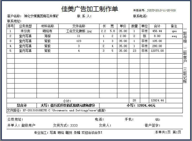 實現客戶圖片以訂單附件方式隨單走,業務員接圖并上傳至附件,制作人員按單取圖進行制作,分工明確,避免混亂。同時也可建立圖片服務器,實行集中式管理。